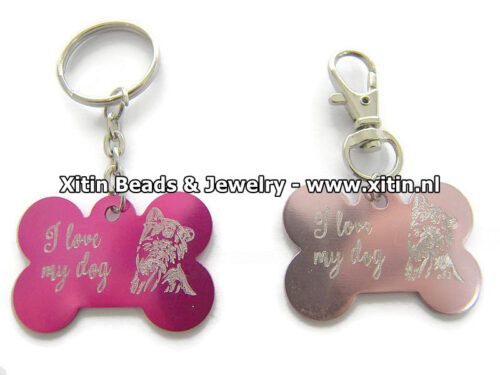 Op de sleutelhanger is de tekst “I Love My Dog” gegraveerd samen met de kop van een Duitse Dog